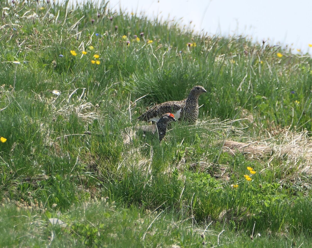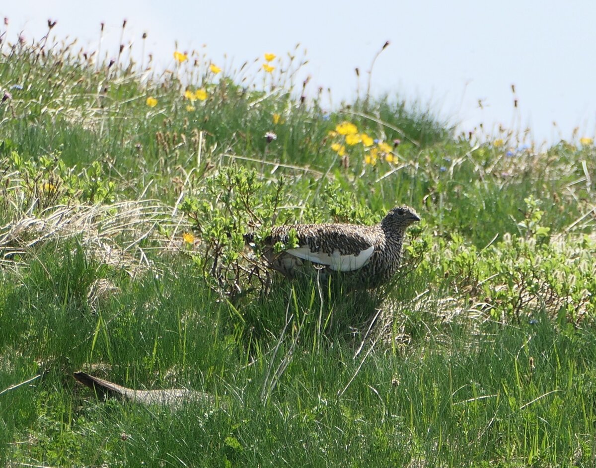 Ein ganz besonderer Verwandter des Auerhuhns ist das Alpenschneehuhn. Wie das Auer- und Birkhuhn zählt es zu den Raufußhühnern. Im Gegensatz zu diesen hält es sich jedoch fast das ganze Jahr über ausschließlich jenseits der Waldgrenze auf. In den nördlichen Alpen also auf der Höhenstufe ab etwa 1800 m.ü.M. Von dort dringt es bis über 3000 m.ü.M. vor.