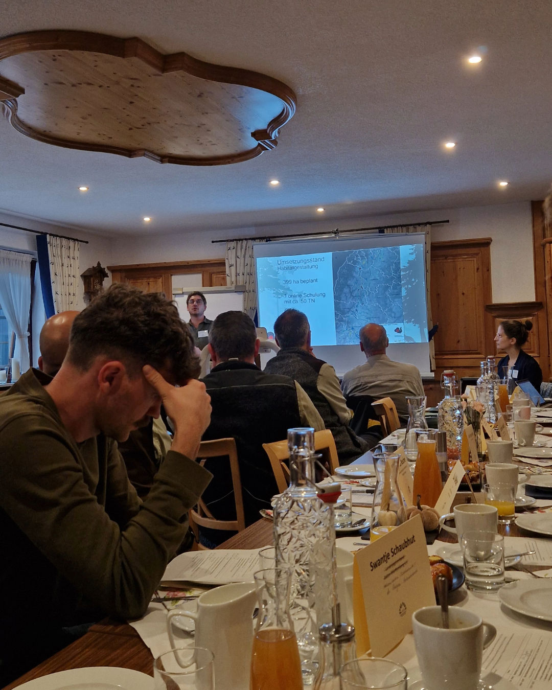 Zwei Mal im Jahr trifft sich die Arbeitsgruppe Raufußhühner um über den Umsetzungsstand des Maßnahmenplans Auerhuhn 2023 – 2028 zu informieren und diskutieren.