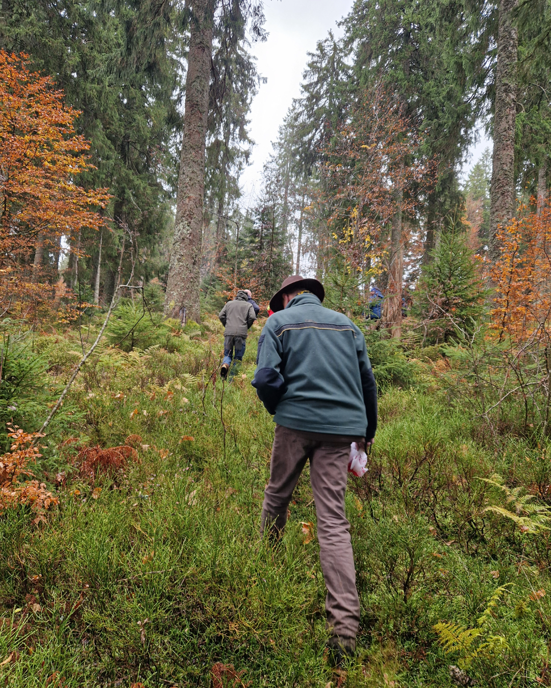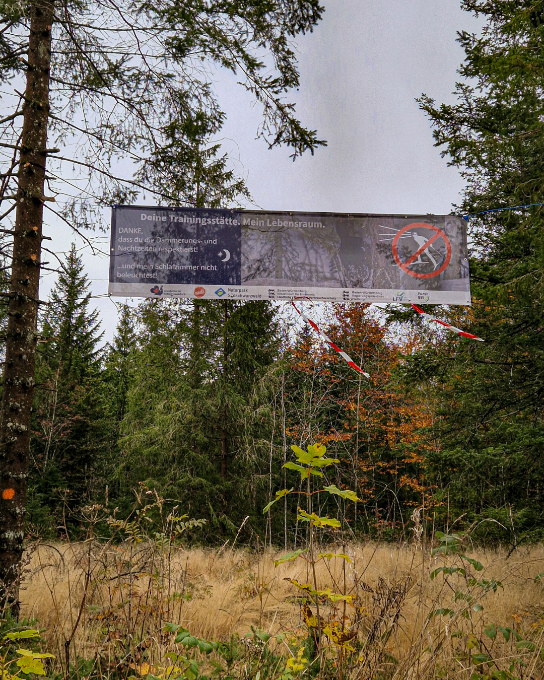 Nachmittags ging es für zwei Stunden bei leichtem Nieselregen in den Wald. Auf dem Weg dorthin konnten die Banner von bewusstWild zur Lenkung von Besucher*innen bestaunt werden.