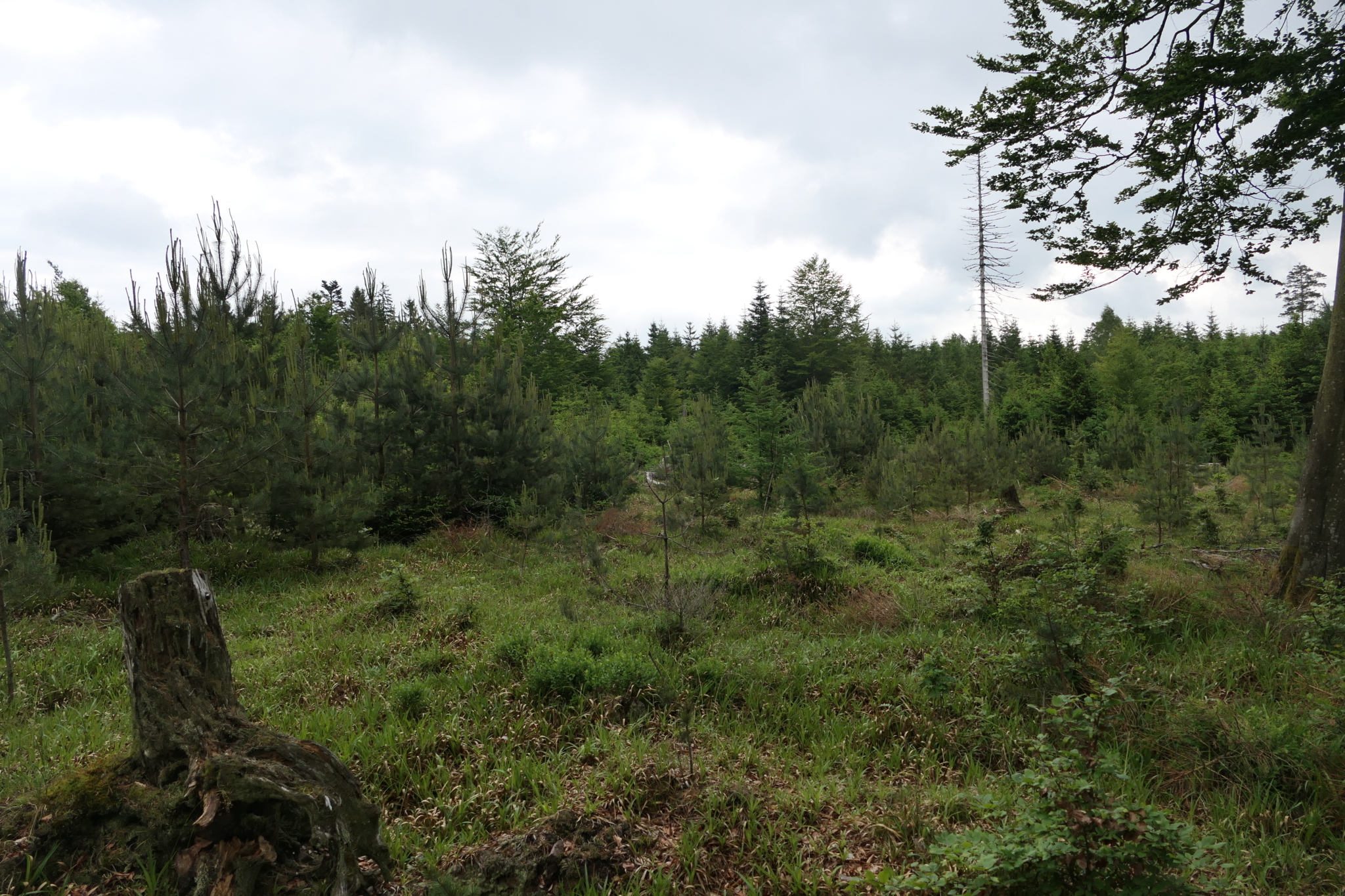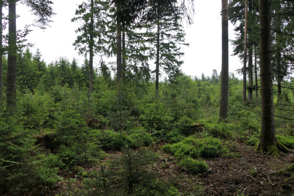 An anderer Stelle werden Waldbestände großzügig durchforstet, wodurch im Unterstand die wichtige Heidelbeer- und Krautschicht gefördert wird. Wertvolle und strukturreiche Altbäume werden dabei ebenso erhalten, wie Mischbaumarten und Totholz.