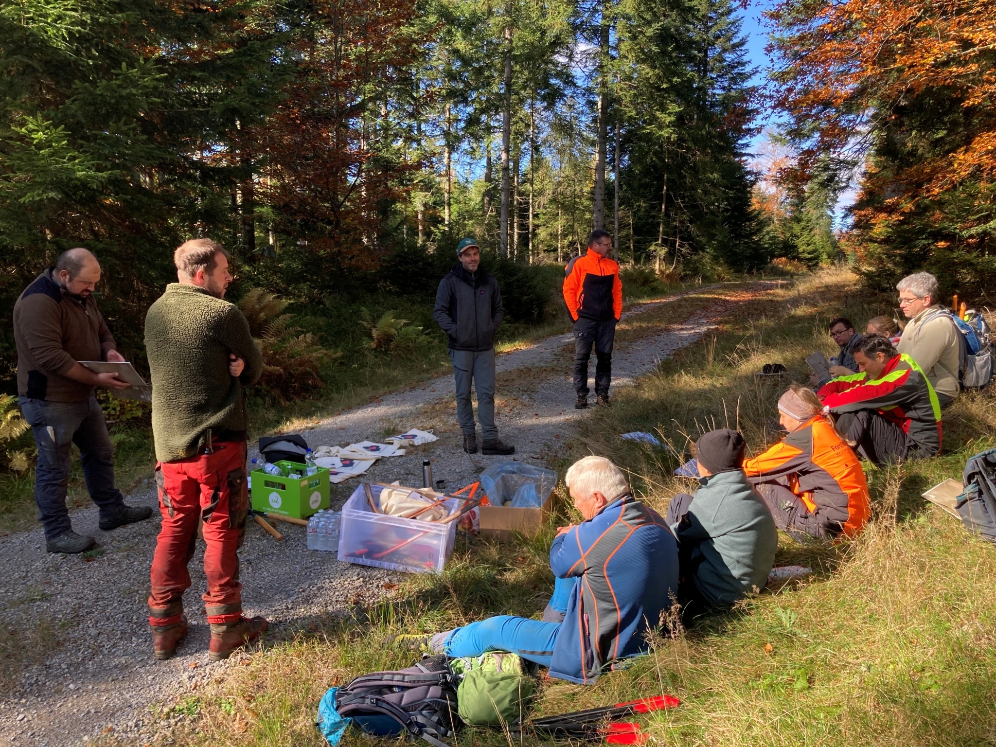 Nach Stunden fleißiger Arbeit war dann Zeit für das Vesper und die Gruppe versammelte sich noch einmal in der Herbstsonne. Auch bei dieser Gelegenheit fand noch ein schöner Austausch statt und die ein oder andere Geschichte über das Auerhuhn wurde berichtet.