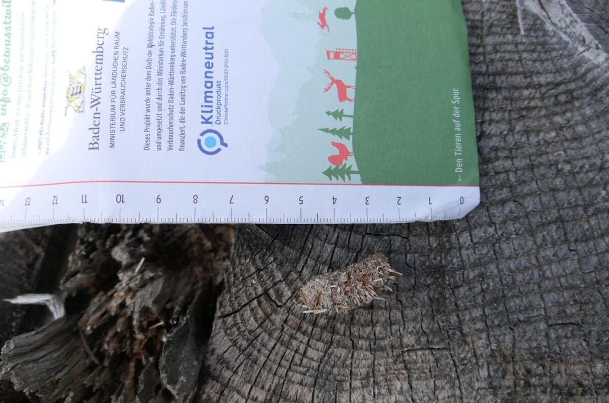 Besonders schön: In direkter Nachbarschaft zu den Pflegeflächen konnten wir die Losung eines Auerhahnes entdecken.