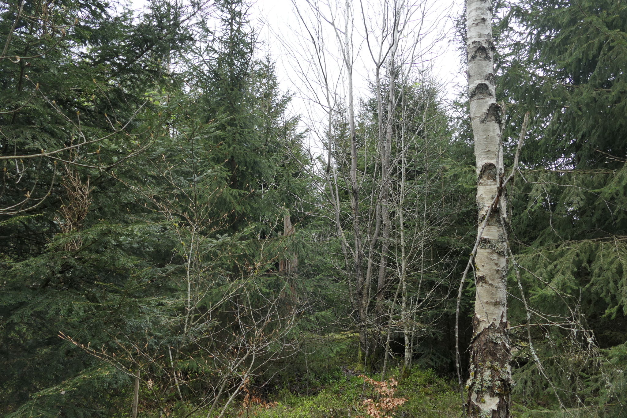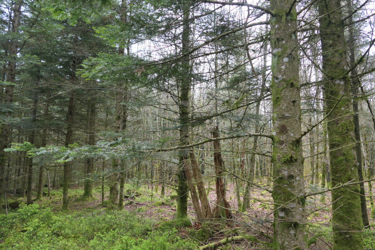 Ein zweiter, älterer Baumholzbestand wird im Zuge des Projektplanes kräftig durchforstet. So soll er für das Auerhuhn wieder passierbar werden. Auch hier wird durch die Maßnahme die Heidelbeerschicht gefördert, um den Lebensraum aufzuwerten. Strukturreiche Altbäume und Totholz verbleibt dabei auf der Fläche und ergänzt auf der Fläche das Lebensraummosaik.