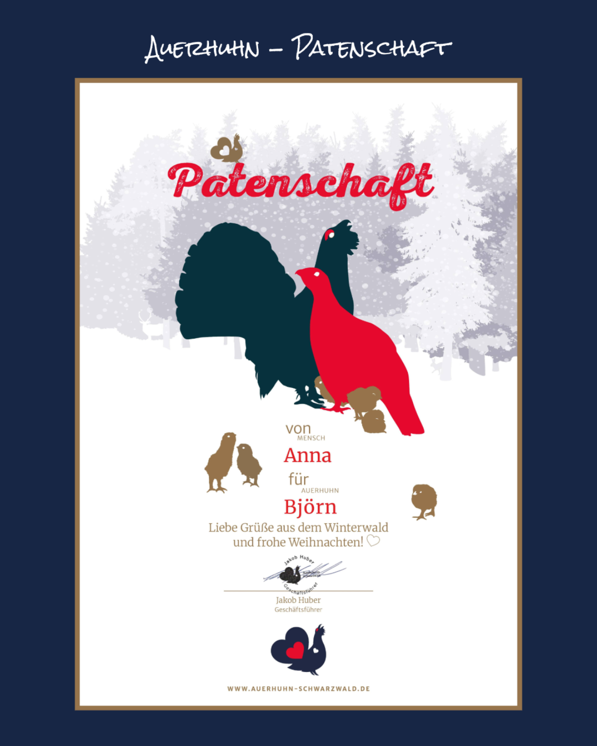 Für Herzmenschen: Eine personalisierte Auerhuhn-Patenschaft direkt bei uns