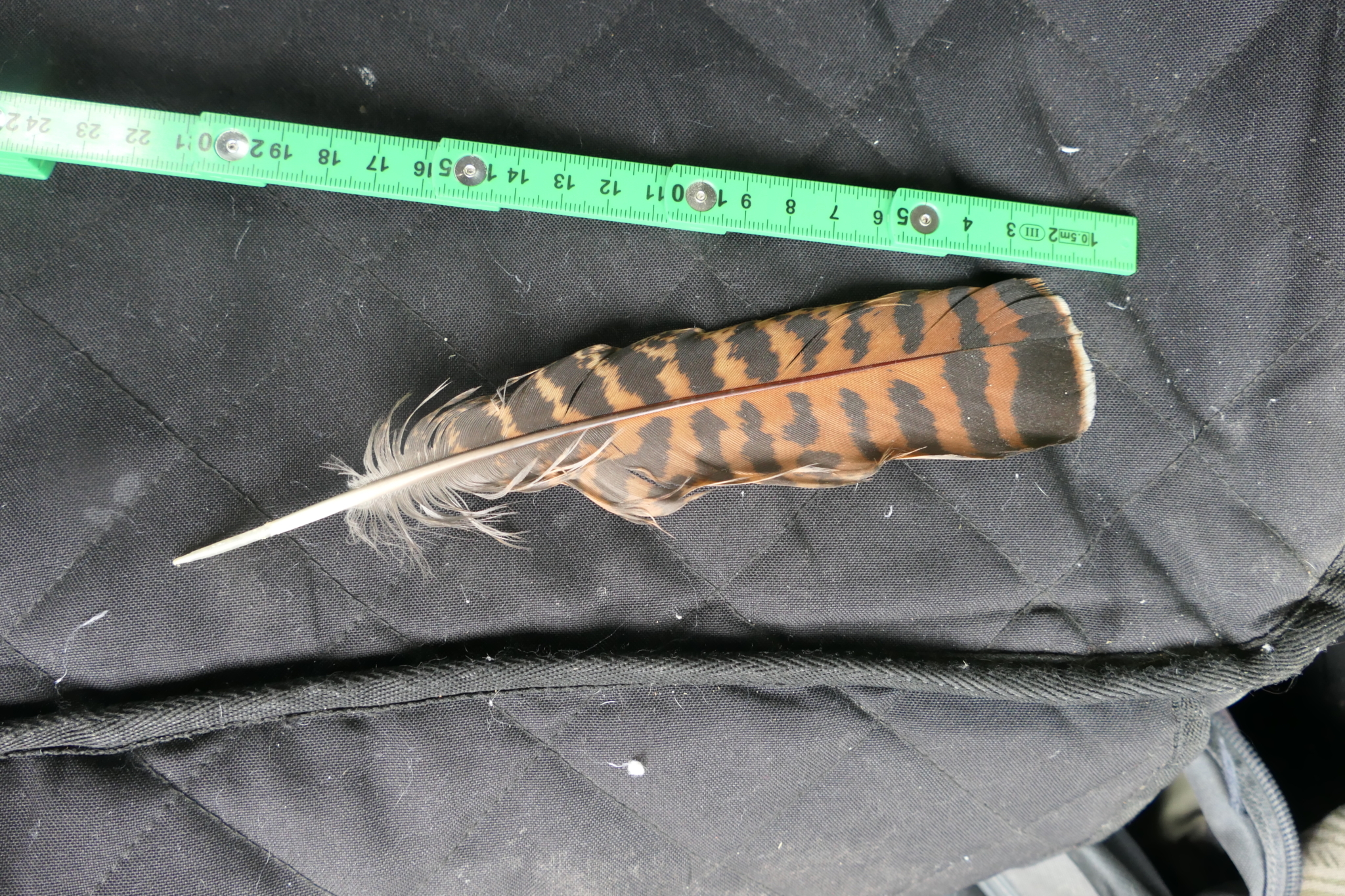 Highlights: In diesem Sommer konnte der Revierleiter bereits eine Henne mit dem Handy fotografieren und ein Fuhrunternehmer berichtete ihm von der Sichtung einer Henne, die gemeinsam mit einem Hahn unterwegs war. Außerdem fand der Revierleiter auf der Pflegefläche des letzten Jahres die Feder einer Henne. Auch als wir im Zuge der Projektplanung die Flächen gemeinsam besichtigten war immer wieder Hennen- und Hahnenlosung zu finden, die beweist, dass - im positiven Sinne - einiges los ist im Gemeindewald Forbach. Und so soll es auch Dank der neuen Pflegeflächen gerne bleiben!